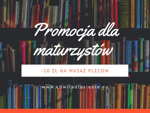 Zainspirowana wizytą maturzystki postanowiłam zrobić w kwietniu promocję w na masaż pleców dla tegorocznych maturzystów. Wiem jaki przeżywacie stres (niedawno moja córka to przechodziła) przed wami ostatnia prosta warto przycisnąć ale warto też zadbać …